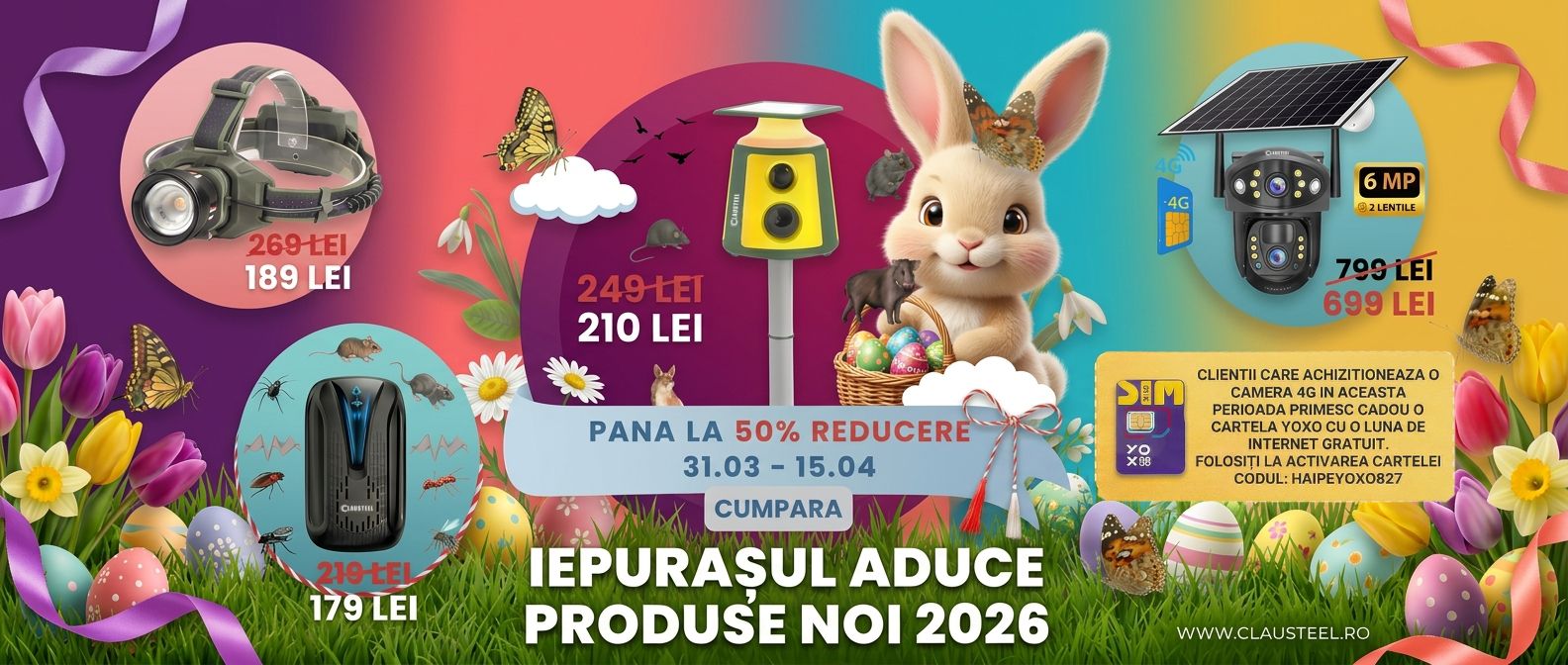 Bine aÈ›i venit în magazinul online CLAUSTEEL, unde visăm la un viitor cu produse inovatoare È™i utile pentru a vă facilita viaÈ›a de zi cu zi! Suntem o destinaÈ›ie digitală dedicată satisfacerii nevoilor dvs. variate, oferind o gamă diversificată de produse pentru casă, siguranță & supraveghere, accesorii auto-moto, anti-daunatori, gadgeturi, aparate de întreÈ›inere personală ,electrice si multe altele.