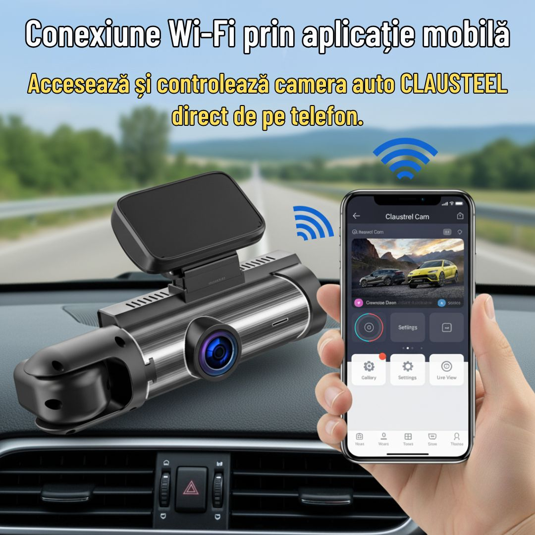 Camera Auto De Bord 2in1 Dual CLAUSTEEL DVR PRO este un dispozitiv inovator conceput pentru a va oferi o experienta de inregistrare auto superioara.