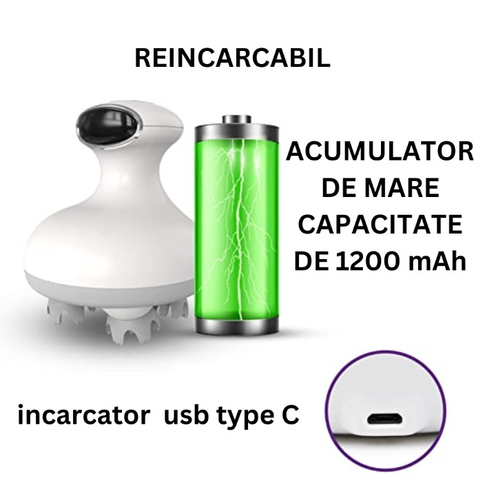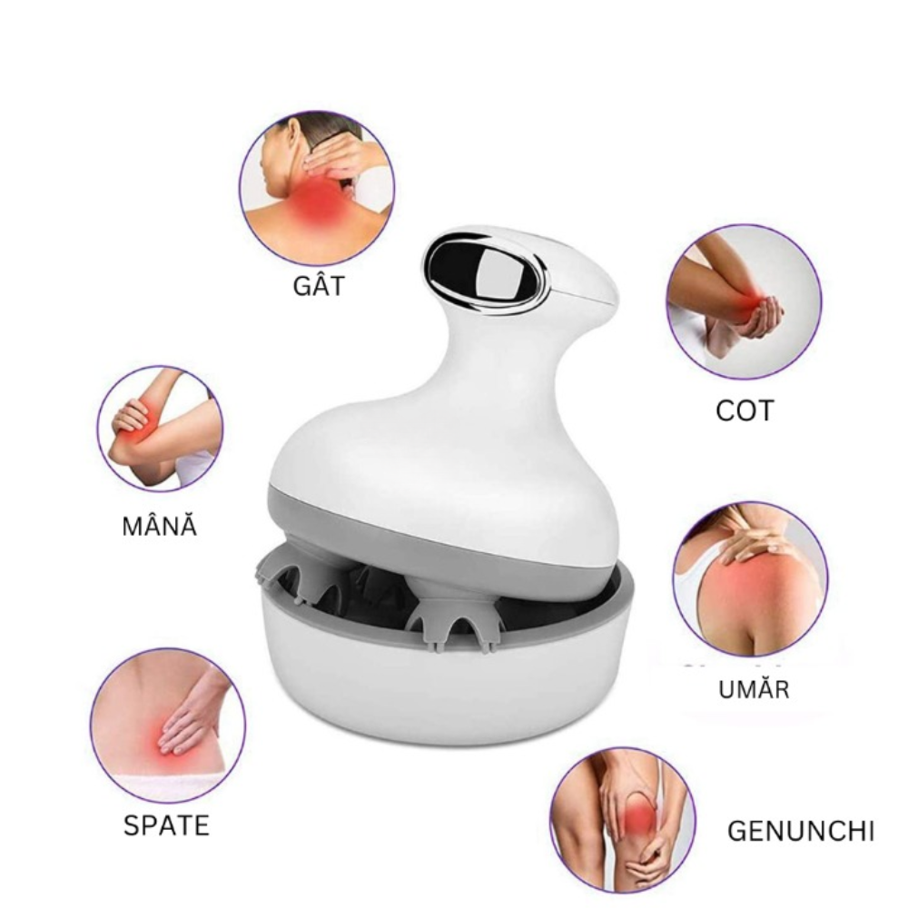 Noul Dispozitiv de Masaj CLAUSTEEL ST-702 pentru scalp si corp ajuta si la stimularea cresterii parului, masaj profund 3D pentru eliberarea durerilor pentru cap, gat si intreg corpul, Acumulator de capacitate mare ( 1200mAh) reincarcabil.