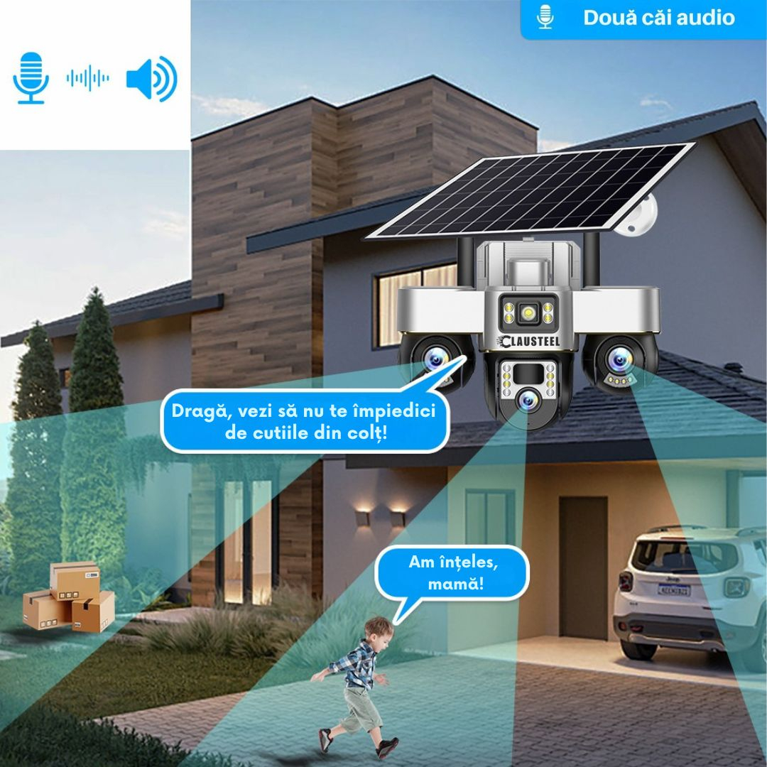 Recomandata pentru curti, case de vacanta, terenuri agricole, ferme, santiere, parcari si zone fara curent sau internet. Ideala pentru supraveghere in aer liber, in locuri greu accesibile, unde ai nevoie de control de la distanta, fara cabluri.