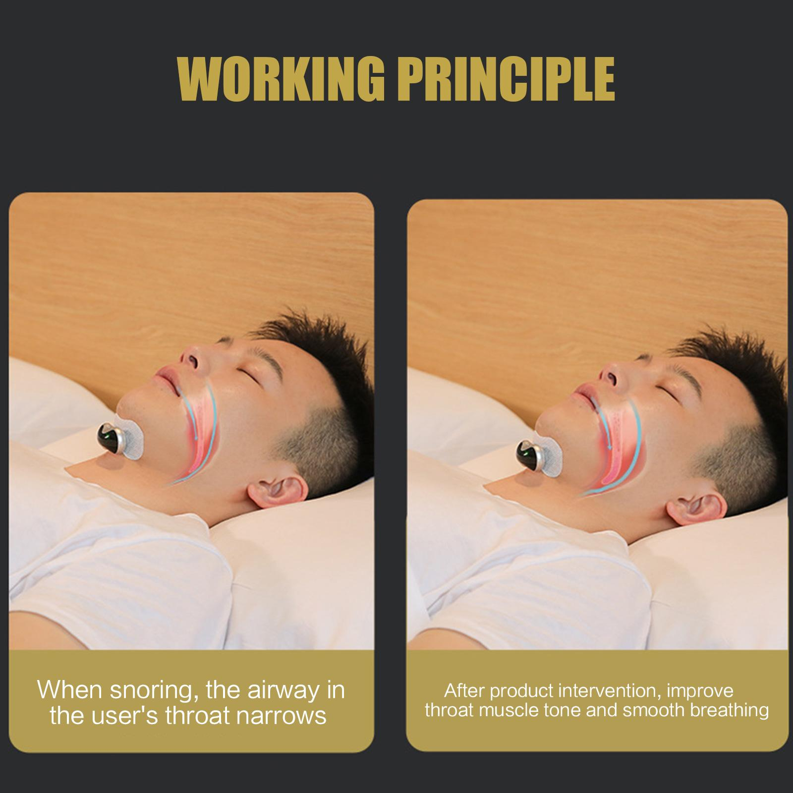 Produsul detecteaza automat si precis sforaitul prin senzori de inalta precizie, maseaza nervul hipoglos si muschi mandibulei prin pulsatii de vibratie la frecvente diferite, promoveaza strangerea muschilor, ajusteaza ritmul respiratiei si faciliteaza respiratia;