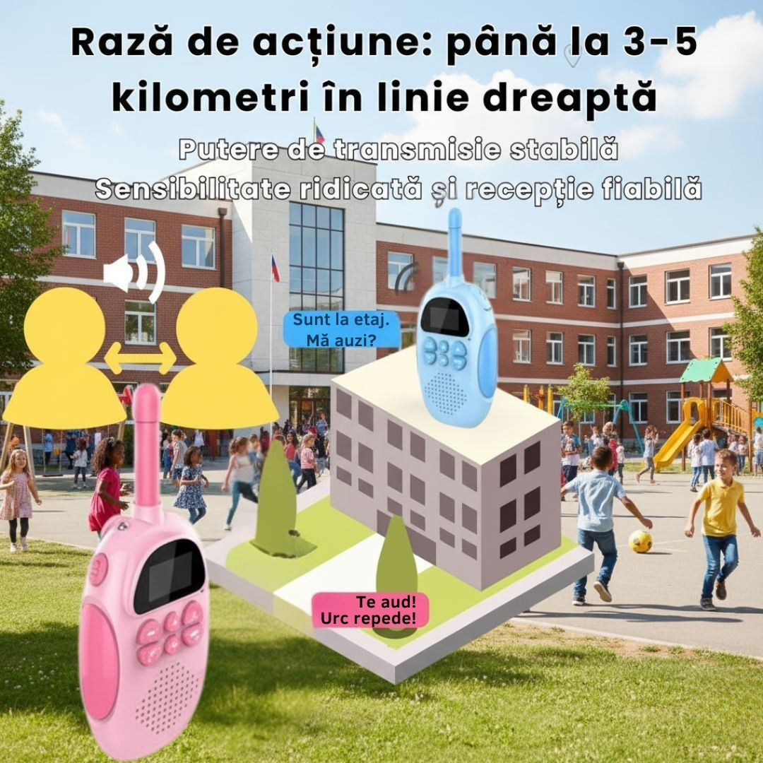 Ideal pentru Copii cu Varsta +3 Ani: Datorita designului lor prietenos si usor de utilizat, aceste stati Walkie Talkie sunt ideale pentru copiii cu varsta de peste 3 ani.